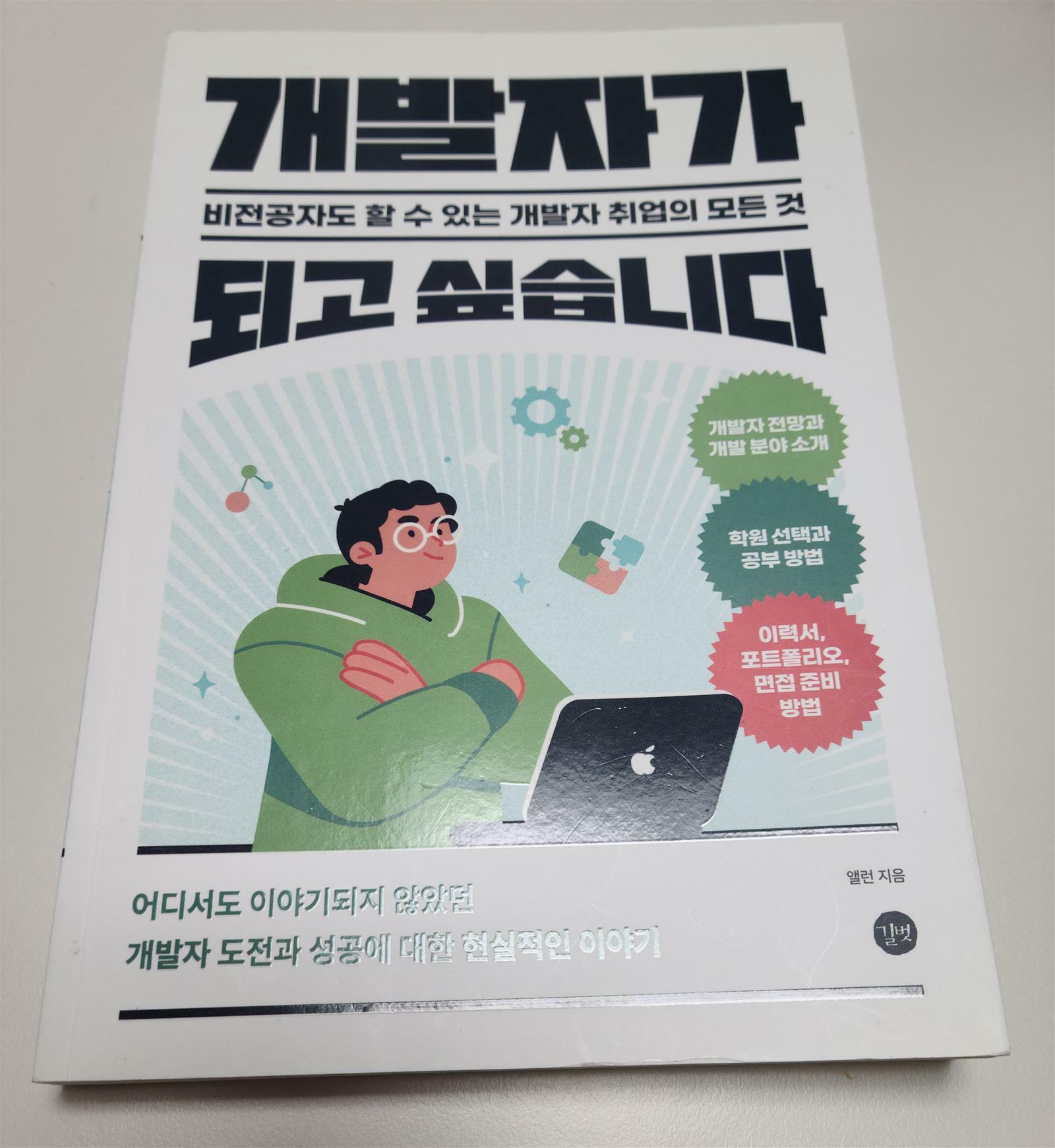 최근 읽은 '개발자가 되고 싶습니다'는 개발자가 되기 위한 공부 방법, 이력서 작성, 포트폴리오 제작, 면접 준비까지 신입 개발자로서 겪게 될 과정 전반을 따뜻하게 풀어낸 책이다. 30대 중반에 iOS 개발자로 도전한 앨런님의 경험을 바탕으로, 다양한 상황에서 실질적으로 적용 가능한 조언과 전략을 제시한다.