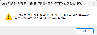 USB 대용량 저장 장치을(를) 꺼내는 동안 문제가 발생했습니다. 본문