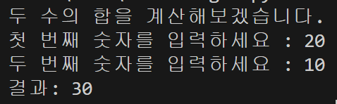 - 입력값은 반드시 문자열이므로 숫자는 자료형 변환이 필요하다.