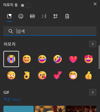 맥에서만 이모지 창을 열어서 사용할 수 있는 줄 알았는데 윈도우에서도 오래전부터 되고 있었다.(?!)